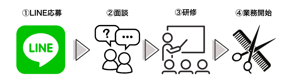 当ページにあるLINEよりご応募ください簡単な審査のあと面談をします。※ご相談やお問い合わせもLINEにて受け付けています